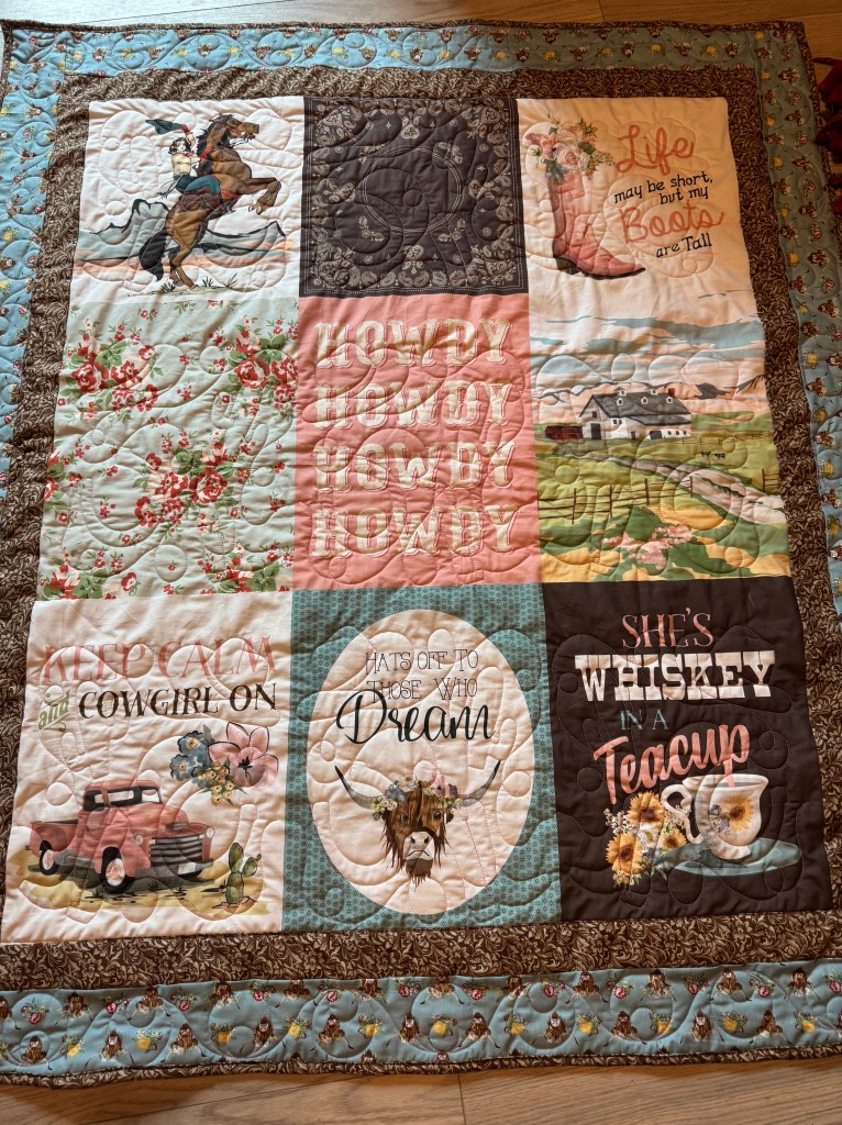 This quilt is waiting for the right woman to come along and claim her. I picture someone who puts flowers on the table and her boots by the door — who laughs loud, loves fiercely, and doesn’t dim herself for anyone. A little whiskey in her soul, served up in the prettiest teacup you’ve ever seen.